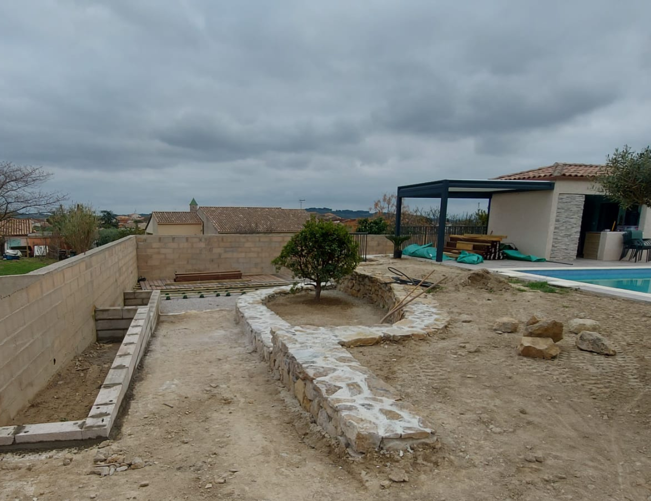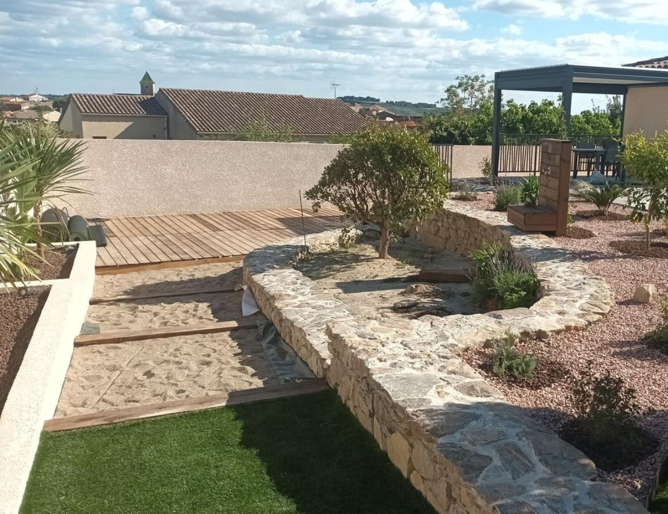 Pour compléter l’aménagement, nous réalisons des terrasses, des terrains de pétanque, ainsi que l’installation d’abris en bois, idéals pour profiter pleinement de votre jardin et optimiser votre espace extérieur. Chaque projet de création de jardin à Bédarieux est pensé dans les moindres détails afin de répondre à vos attentes.